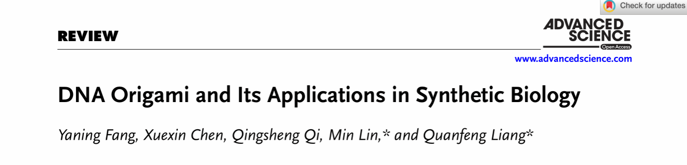 近日,河南大学农学院林敏教授联合山东大学微生物改造技术全国重点实验室梁泉峰教授在国际期刊《Advanced Science》(一区,5年IF= 15.6)上发表了题为“DNA Origami and Its Applications in Synthetic Biology”的综述文章。