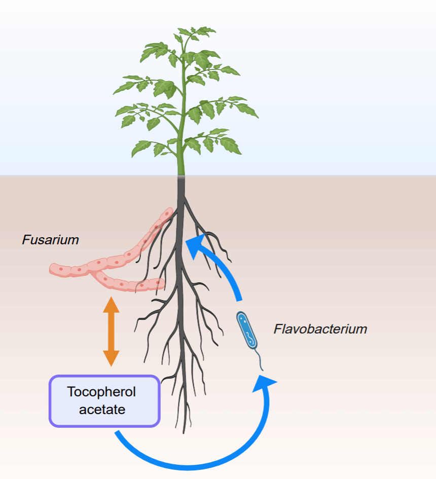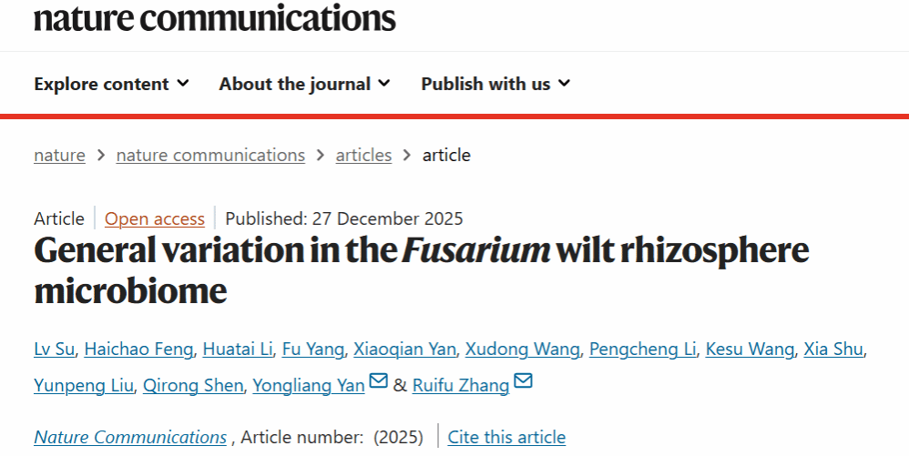 近日,《自然·通讯》(Nature Communications)在线发表了南京农业大学沈其荣院士团队张瑞福教授课题组、中国农业科学院生物技术研究所与河南大学农学院合作最新研究成果“General variation in the Fusarium wilt rhizosphere microbiome”。该研究通过多组学数据整合与实验验证,系统揭示了致病镰刀菌(Fusarium spp.)入侵下根际微生物组稳定的变化特征,并阐明了益生黄杆菌(Flavobacterium)通过根系分泌物生育酚(tocopherol acetate,维生素E衍生物)介导的富集机制,为土传病害的生态防控提供了理论依据与策略。