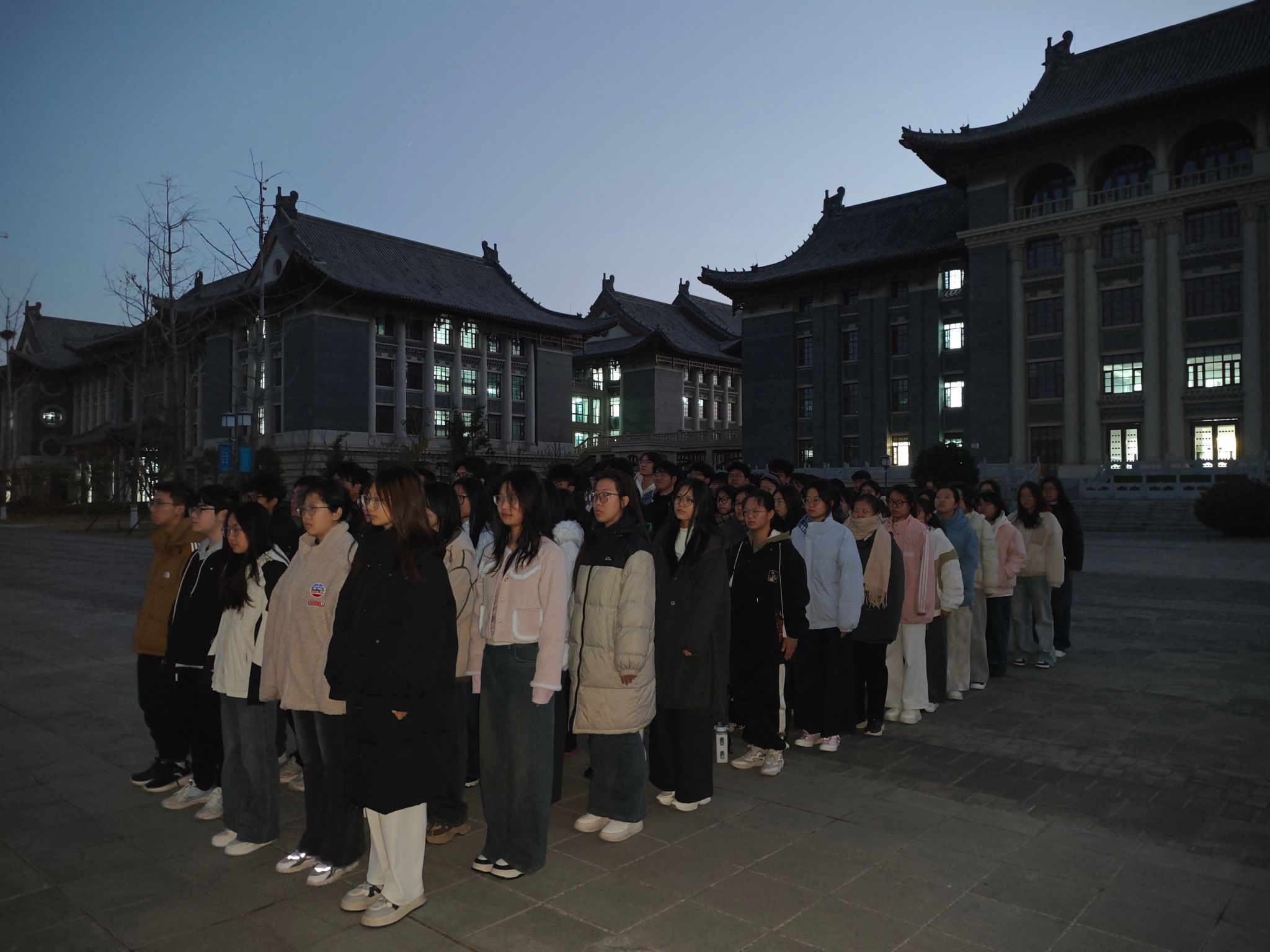 11月24日,农学院于九章中楼前空地组织观看升旗仪式,辅导员田海龙和2024级、2025级全体本科生参与活动。