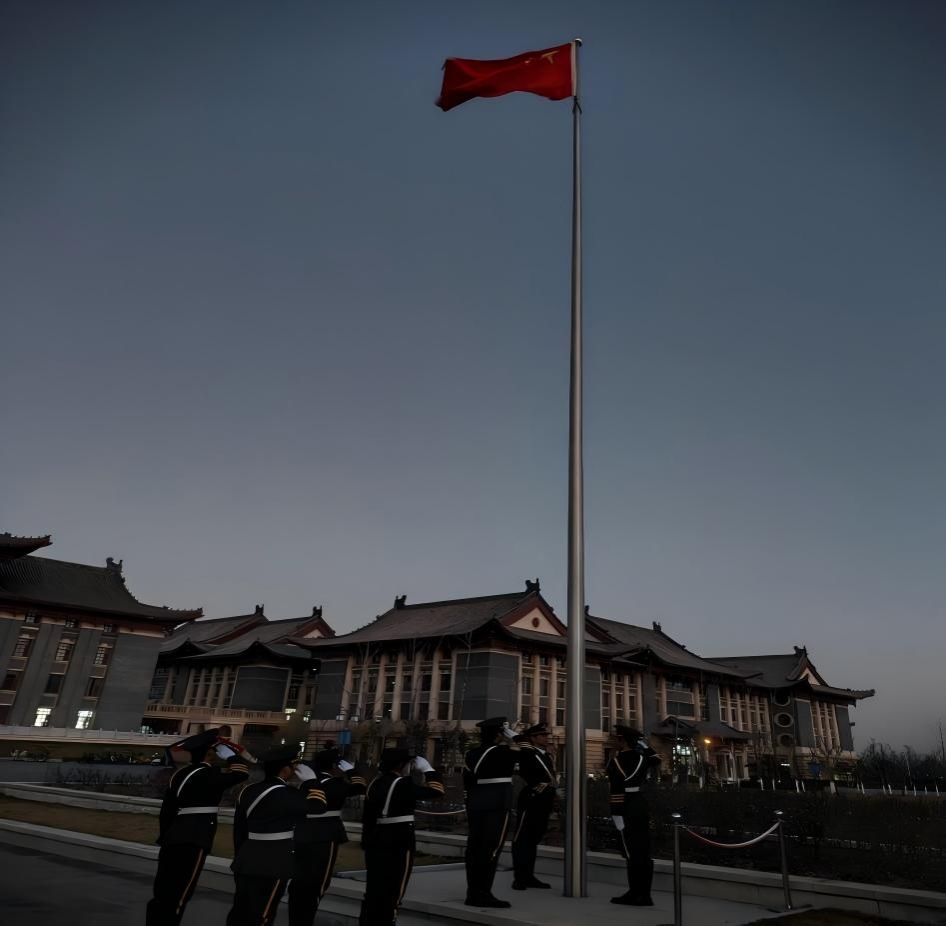 清晨的九章中楼前庄严肃穆,全体师生整齐列队,精神饱满。伴随着铿锵有力的步伐划破清晨的宁静,升旗仪式正式拉开帷幕。鲜艳的五星红旗迎着晨光缓缓升起,全体师生肃立注目,行礼致敬,共同见证这庄严而神圣的时刻。飘扬的国旗不仅映照着清晨的霞光,更激荡着每位师生心中的爱国热忱。