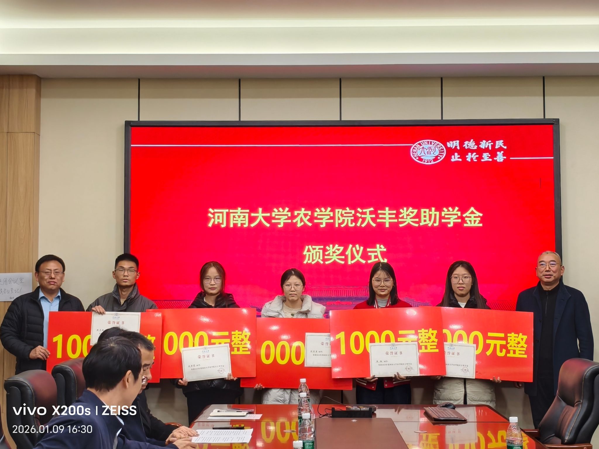 据悉,本次是沃丰奖助学金第二届颁发,也是河南大学农学院与河南沃丰农业开发有限公司深化校企协同育人的生动实践。农学院将始终坚守立德树人根本任务,锚定国家农业发展战略需求培育专业人才,为学校发展贡献力量。(作者:徐珂欣 审核:王磊)