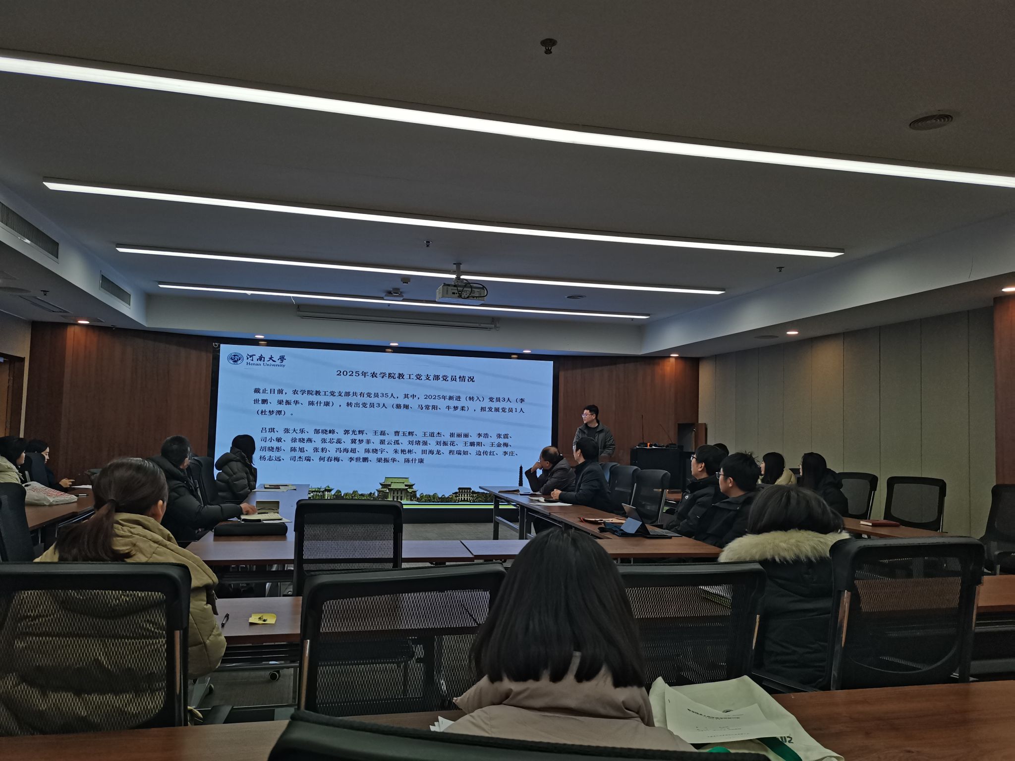 为学习贯彻好党的二十届四中全会精神,全面加强党支部标准化规范化建设,压实党建工作责任,1月26日,农学院在省部共建作物逆境适应与改良国家重点实验室101会议室召开党委理论学习中心组(扩大)会议暨2025年度党支部书记述职评议,学院党委委员、党支部书记、党员代表参加会议。会议由学院党委书记王磊主持。